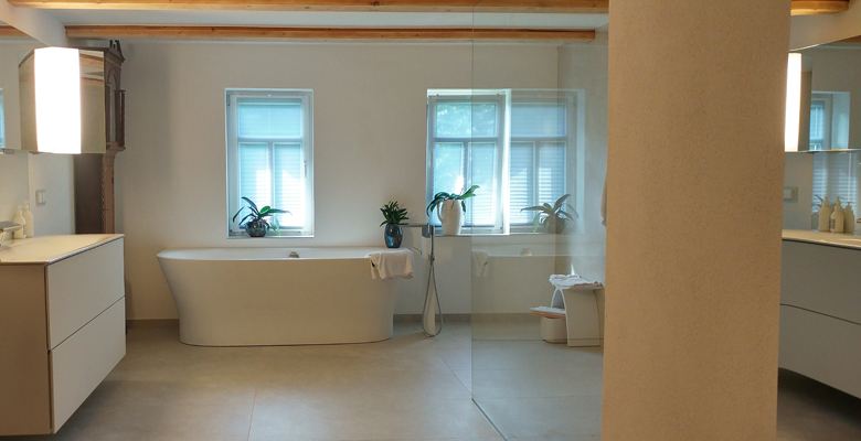Fuer unseren Kunden konnten wir ein komplettes Badezimmer inklusive franzoesischem Balkon fertigen.
